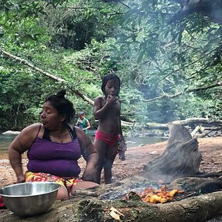 Hlavným programom bola rieka. Tá bola studená a perfektne nás po prechádzke osviežila. Deti sa hrali, chytali rybky, z malých kokosových orieškov vyjedali dužinu. Na obed bola ryža, uvarená v banánovom liste. Vyzerala ako banán, ale bola to ryža. Jedli sme ju tak, že sme si ju najskôr posolili a potom jedli ako banán. K ryži sme mali marinované mäso alebo práve ulovenú rybu s dierou v hlave. Dosť drsné, ale aj to je Embera.